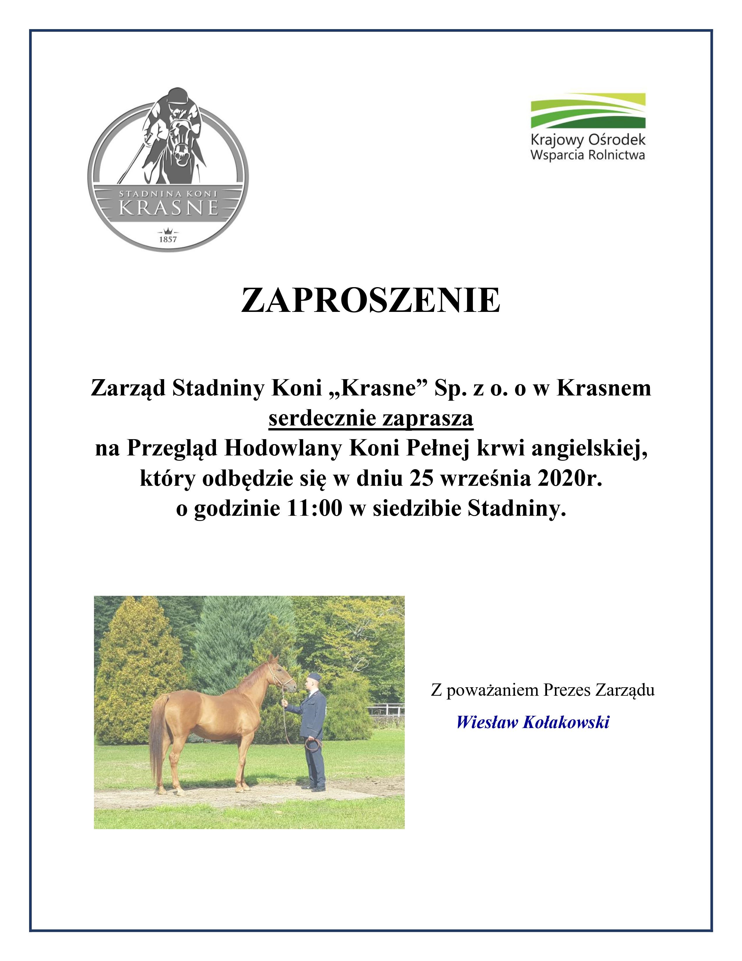 Zarząd Polskiego Związku Hodowców Koni Pełnej Krwi Angielskiej serdecznie zaprasza
