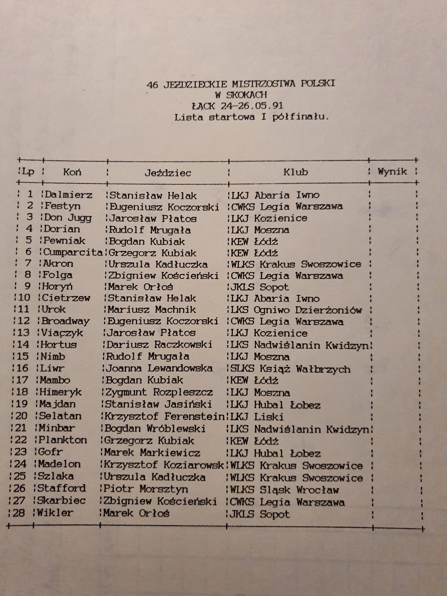 Mało atrakcyjne zdjęcie listy startowej sprzed 30 lat?